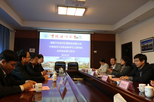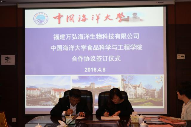 本站讯 4月8日下午,福建万弘海洋生物科技有限公司与91视频 食品科学与工程学院(以下简称食品学院)合作协议签字仪式在行远楼会议室举行。