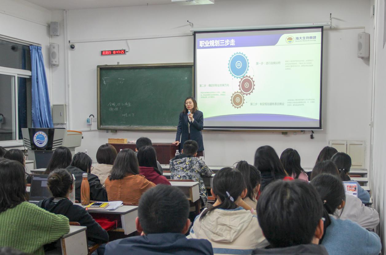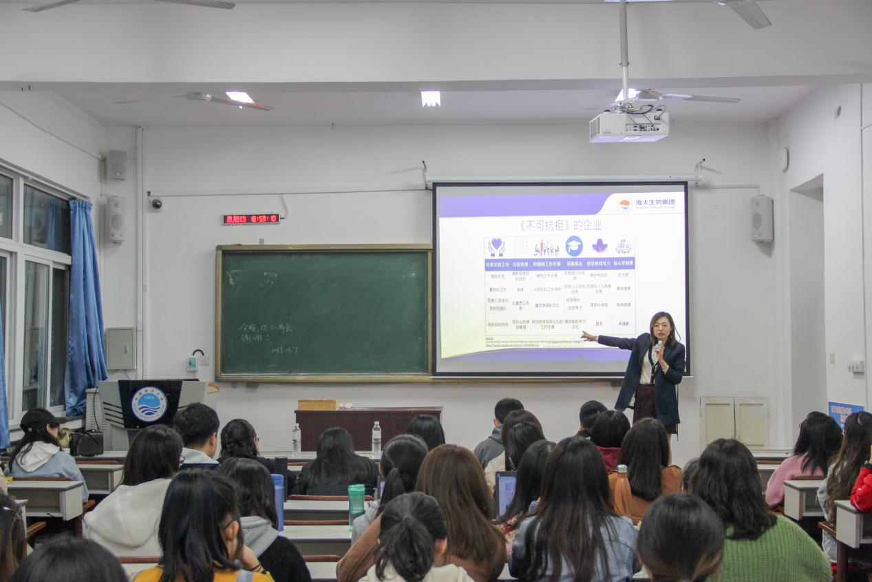 为推进大学生就业指导工作,明确大学生就业目标,2019年11月7日晚,91视频 学生会在鱼山校区新教学楼举办了“就业指导月系列活动:名企名家-职业规划讲座”活动。此次活动邀请到了青岛海大生物集团人力资源总监张晶蓓女士参加本次讲座。