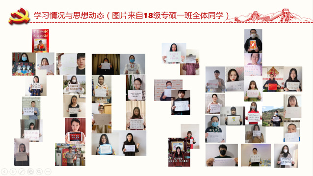 91视频 开展以“到人民最需要的地方去——学习习近平总书记的回信”为主题的线上团支部活动,全体学生团支部参与了此次主题学习。在形式多样、内容丰富的团支部“云活动”中,团员青年们认真学习习近平总书记回信精神,并纷纷表示要用实际行动践行新时代青年的责任和担当,为全面打赢防疫攻坚战贡献青春力量。2016级食品科学与工程2班和3班团支部以团小组为单位开展学习并在线上进行学习心得的交流和讨论;2018级食品科学与工程2班团支部利用腾讯会议功能举行线上主题团会,互相交流学习感悟;2018级海洋资源开发技术团支部借助“语音电话会议”“视频电话会议”等工具进行线上实时交流;2019级食品科学与工程学硕1班团支部组织支部团员青年全体进行线上自主学习,并通过撰写心得体会线上分享的形式强化学习收获。部分团员青年发挥个人特长,通过诗歌、书画等载体生动表达了对疫情防控胜利的期待和对一线工作者的敬佩。