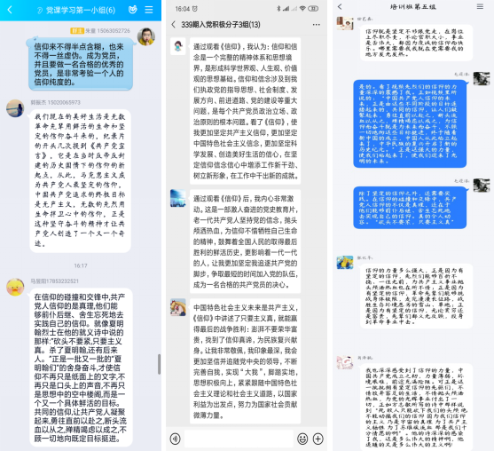 最后进行视频《信仰》-只要主义真的学习,各小组成员分别进行激烈地讨论。其中2018级食品工程研究生朱童提到“信仰来不得半点含糊,也来不得一丝虚伪。成为党员,并且要做一名合格的优秀的党员,是非常考验一个人的信仰纯度的。”2018级食品科学博士生于闯讲到“正是信仰让我们的共产党人在关键时刻挺身而出,与人民同甘共苦,他们的行动无不体现了党与人民的鱼水情怀。”