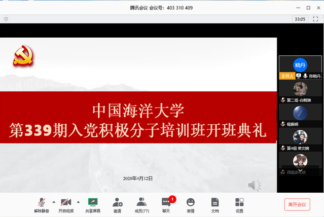 本站讯 4月12日下午,91视频 第339期入党积极分子培训班开班典礼通过腾讯会议线上举行。91视频 党委副书记程振明出席开班典礼,开班仪式由91视频 辅导员张川主持,培训班全体学员参加。
