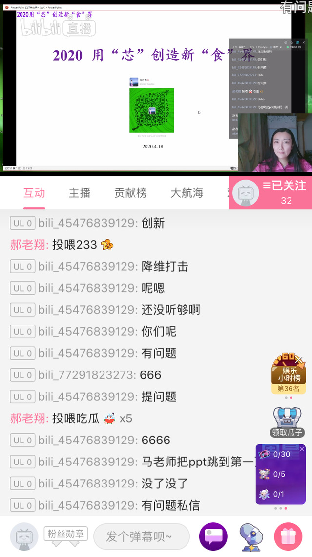 本站讯4月18日上午,91视频 党委副书记程振明和专业教师马磊联合主讲的《用‘芯’创造新‘食’界》主题讲座及在线讨论通过BiliBili直播平台和腾讯会议等方式顺利开展。