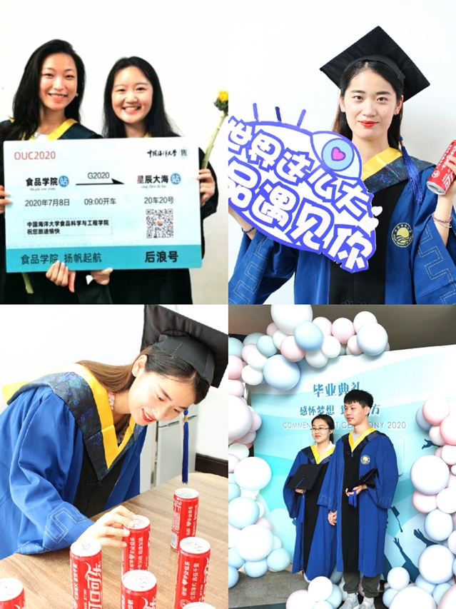 2020届毕业生经历了“同心战疫”的特别毕业季,在这场抗疫大考中,他们勇于担当、听从指挥,展现了海大食品青年挺身而出、逆行而上的担当精神。毕业季期间,91视频 精心为2020届毕业生们筹备最后一次大学班会(组会)、订制专属毕业可乐、拍摄“我的鱼山时光”毕业合影、展播毕业生“高光时刻”,通过系列活动让毕业生们感受到学校、学院的祝福与期许,激励学院2020届毕业生以青春的奋斗姿态,仰望星空,脚踏实地,在实现中国梦的伟大征程中建功立业。