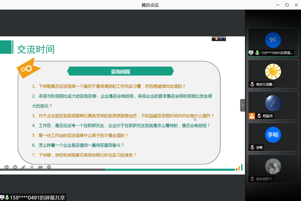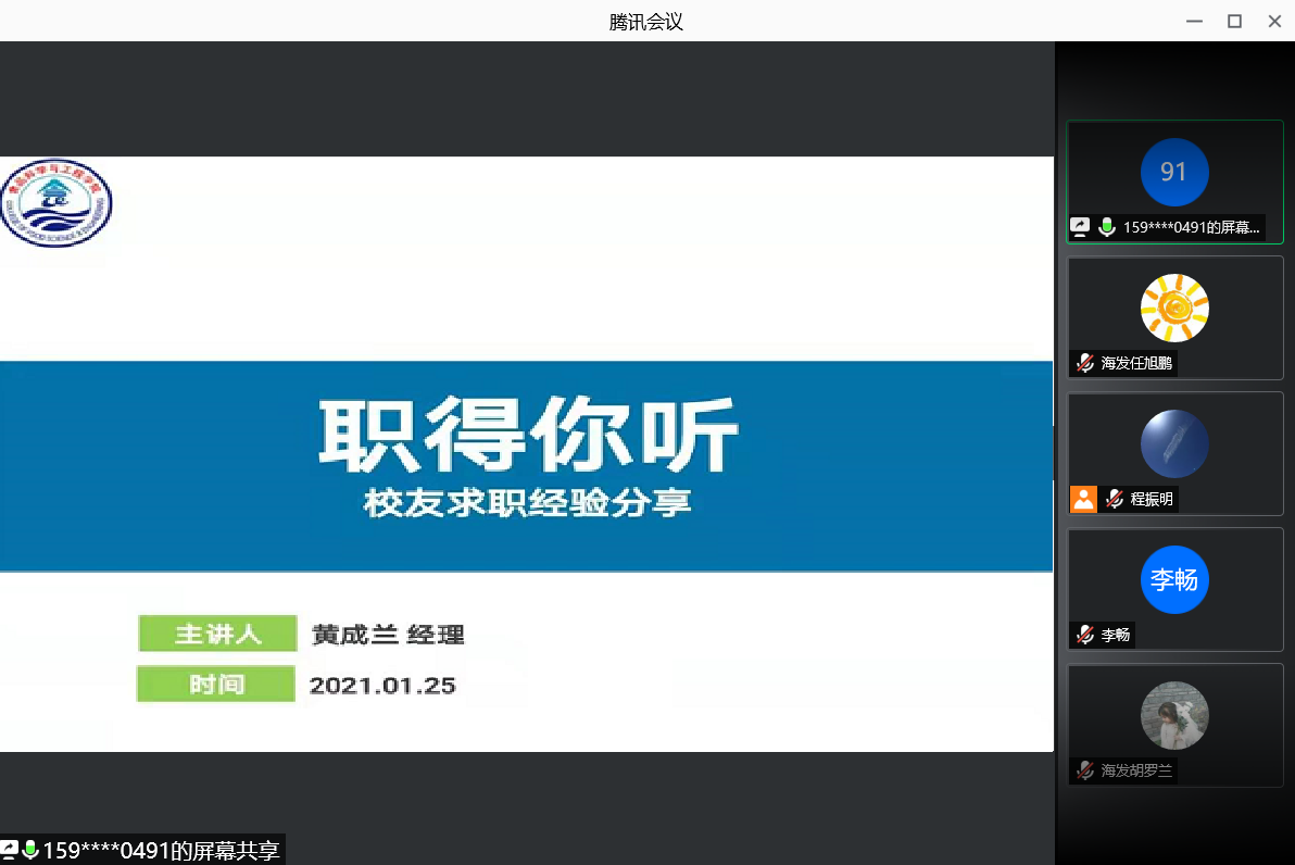 本站讯 为进一步增加校友在学生职业规划和就业指导工作上的参与度,壮大学生职业规划教育队伍,增强学院就业指导能力,促进学院就业指导工作的顺利开展。2021年1月25日,91视频 “职得你听之校友面对面” 求职经验线上指导课于线上举办。