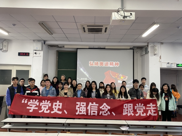 2021年117日,由学院副院长、党委委员徐宋娟主讲的《弘扬奥运精神》主题党课在新教楼201室顺利开课,学院2020级专硕2班党支部全体党员及入党积极分子参加了此次学习。徐宋娟从奥运会相关知识点入手,追溯了奥林匹克运动会发展史,奥运五环、奥火炬的出现及升级改造史,带领同学们进入了奥林匹克运动的世界。向同学们发出呼吁:从体育大国迈向体育强国,需要你我的共同参与。每位中国人都应该争当全民健身运动的践行者,争当科学健身的引领者,积极投身到全民健身热潮中去,为健康中国、体育强国贡献青春力量。