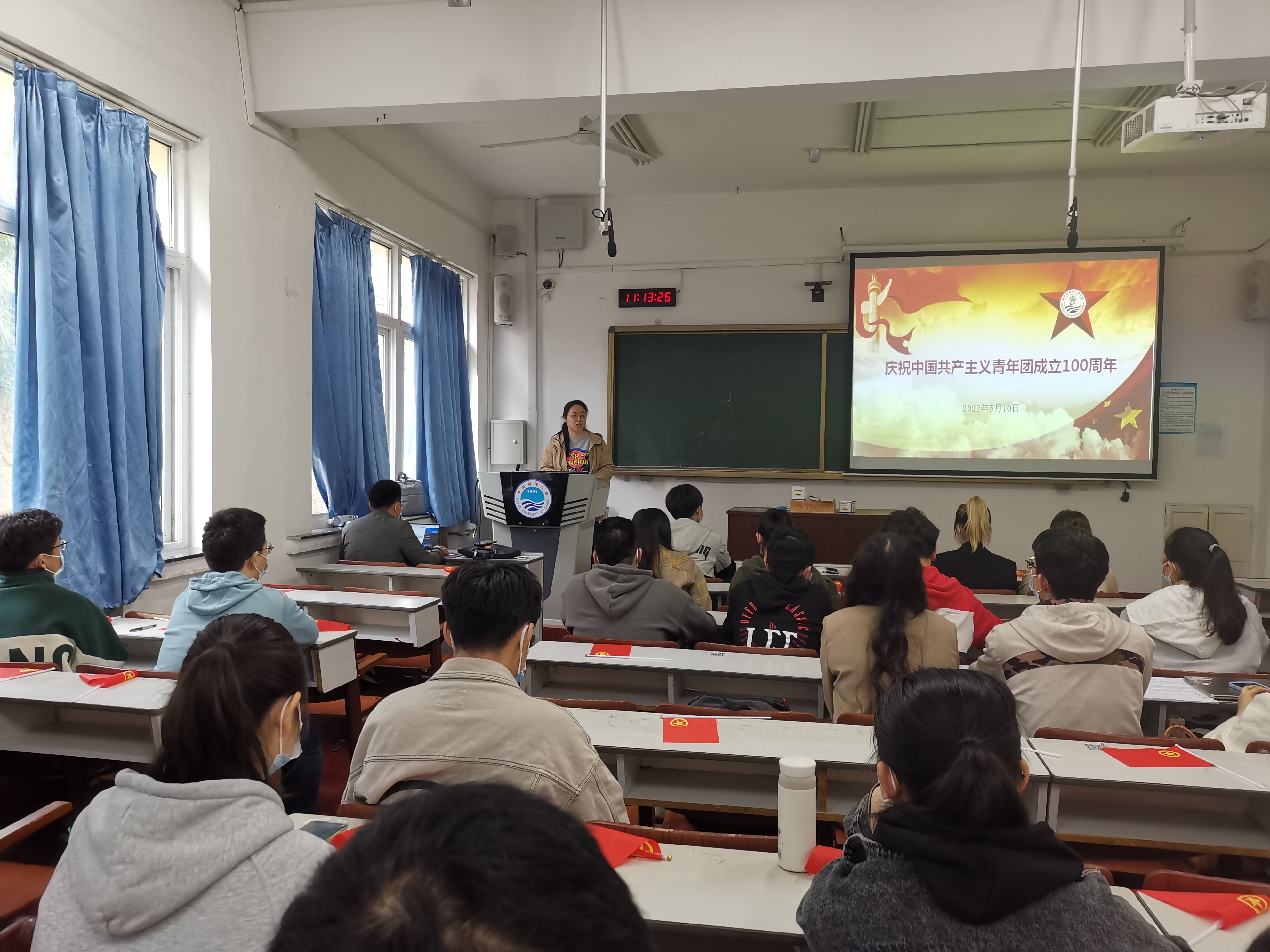 本站讯 在这青春澎湃的五月,中国共产主义青年团迎来了她的百岁生日。5月10日上午,庆祝中国共产主义青年团成立100周年大会在北京召开,91视频 组织团干部集体观看,学院团委书记李想、团委副书记张川、全体学生团支部书记参加。