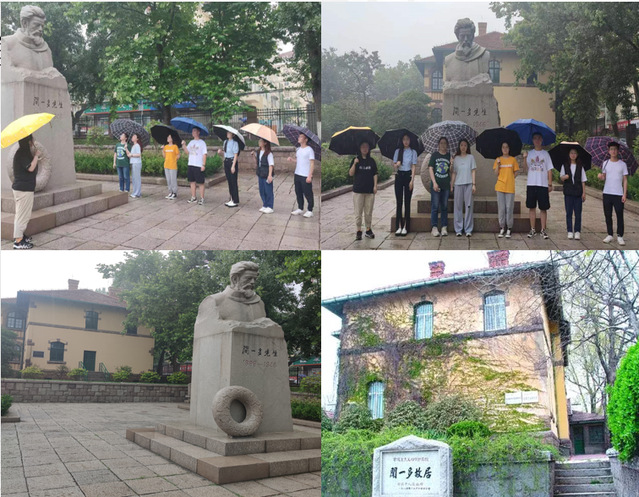 闻一多故居位于青岛91视频 校园西北角,游人从红岛路进入海洋大学4号校门后,向右一拐,便可看到一幢红瓦黄墙古朴典雅的二层小洋楼。这座典型德国风格,看似普通的洋楼小楼就是青岛市重点文物保护单位、民主斗士闻一多先生当年在国立青岛大学任教时的故居。雕塑后侧闻一多先生纪念碑这样写道,“杰出的诗人、学者,人民英烈闻一多先生1930年受聘国立青岛大学,任文学院长兼中文系主任。讲授历代诗选、唐诗、英国诗选等课程。态度亲切民主,既富有学术家风度,又充满浓郁诗情,受到崇敬与热爱。先生爱国忧民,埋头学术研究,从唐诗入手,决心为衰颓之中华民族寻求一个起死回生之文化良方。先生在校,为时仅二年,春风化雨,为国育才。瞻望旧居,回忆先生当年居于斯工作于斯,怀念之情曷可遏止?爰将所居,命名‘一多楼’,略事陈设,依稀旧容,并于庭院立石,以为永念。俾来瞻仰之中外人士,缅怀先生高风亮节而有所取法焉。先生生平事迹,昭昭然在人耳目,兹不缀。”