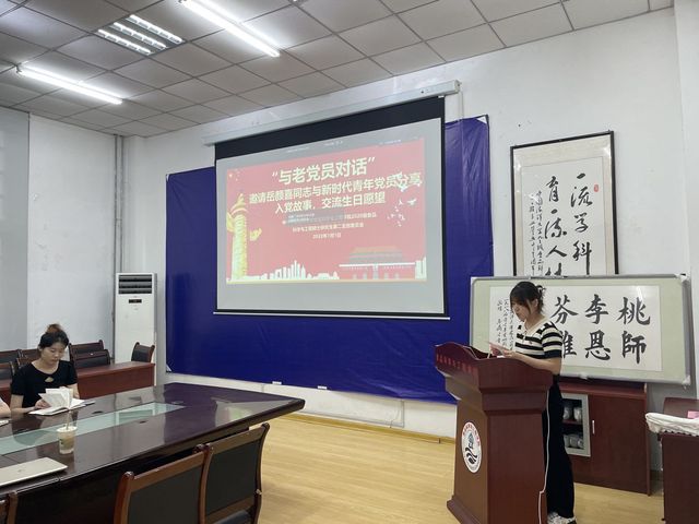 会议最后,老党员及全体学生党员共同回顾了以嘉兴红船为起点的中国共产党百年的发展历程,老党员岳颜喜同志总结表示,受邀参加本次主题党日活动共庆党的生日十分荣幸,虽然我们之间年龄相差比较大,但是对党的忠心与深厚的感情是一致的,青年党员们坚定的决心与行动上的落实足以让我们相信在中国共产党的带领下一定会实现中华民族伟大复兴。