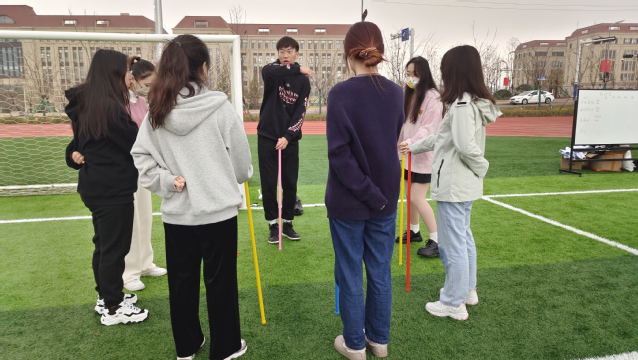 随后,各组同学进行了4个拓展项目的比拼,各小组之间竞技角逐,现场气氛十分活跃。