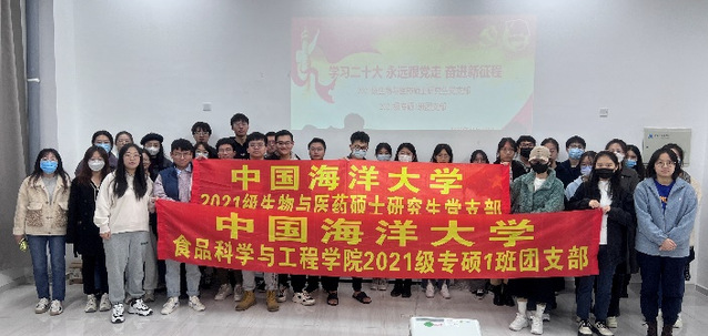 本站讯 为全面学习党的二十大报告和新修订的《中国共产党章程》内容,深入贯彻党的二十大精神,11月19日,2021级生物与医药硕士研究生党支部联合班级团支部于食工楼150会议室开展集体学习,围绕“学习党的二十大、永远跟党走、奋进新征程”开展主题党日、主题团日活动,全体党员、团员集中学习交流,凝聚共识,领悟精神,形成浓厚的学习氛围。为方便联合培养的同志参与,本次活动采取线上线下同步的方式进行。