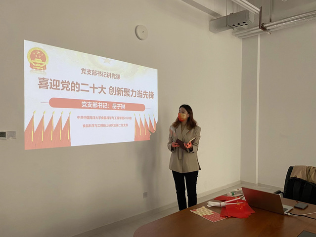 硕士研究生第二党支部书记岳子琳讲授题为《喜迎党的二十大 创新聚力当先锋》的专题党课,党支部全体成员共同参加了此次学习。