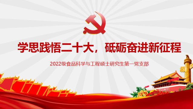 “百年恰风华,世纪正青春”。在党的二十大精神指引下,91视频 2022级食品科学与工程硕士研究生第一党支部将全面持续学习宣传贯彻党的二十大精神,不断提高自身思想境界,为实现中华民族伟大复兴而奋斗!