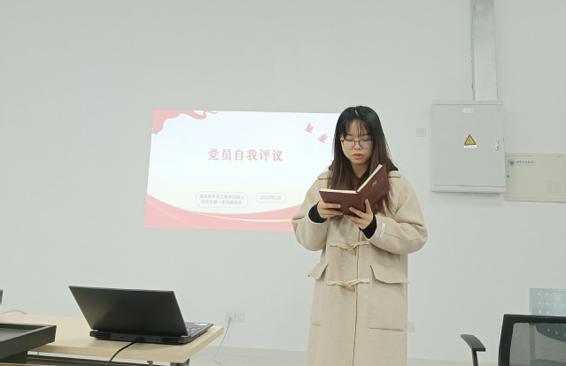 本站讯 传承百年志、奋进新征程。2023年3月22日上午,为进一步学习贯彻党的二十大精神,了解中国共产党党章的建设历程,91视频 硕士研究生第一党支部在食工楼149会议室召开2022年度组织生活会。党支部书记周倩主持会议,党支部思想领航员米娜莎参会指导。