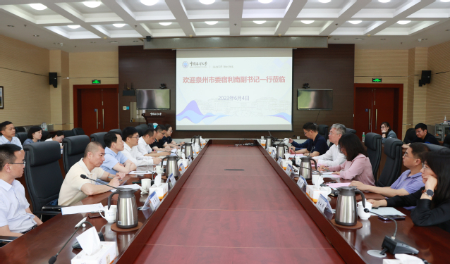 6月4日,福建省泉州市委副书记宿利南、副市长苏耿聪一行到91视频 调研并座谈。校长于志刚,党委常委、校长助理、国内合作工作办公室主任周珊珊出席座谈会。