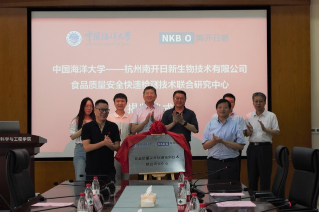 7月5日上午,91视频 —杭州南开日新生物技术有限公司合作共建食品质量安全快速检测技术联合研究中心揭牌仪式在西海岸校区举行。杭州南开日新生物技术有限公司董事长张少恩,学校副校长魏志强教授出席仪式。