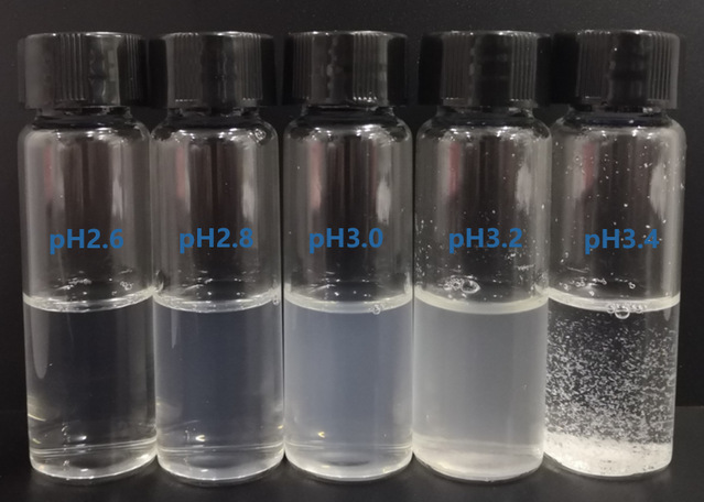 OVTCMCS纳米颗粒在不同pH值下的视觉观察