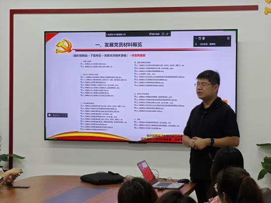 培训会上,丁晨阳针对基础党务工作,详细进行了入党流程及材料填写规范的培训,对入党申请书、入党志愿书、考察表和汇总表、思想汇报等入党材料的标题、格式、时间等提出了具体要求,并强调了材料书写注意事项着重提醒学生党支部书记强化党支部标准化、规范化建设,以高度的责任心投入到支部建设中