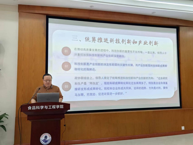 会上,赵元晖书记带领全体党员深入学习习近平总书记在全国两会期间的重要讲话和全国两会精神,解读了2024全国两会政府工作报告的有关内容,围绕“新质生产力”等两会热词新词,引导支部党员结合教学科研工作进行深入思考。