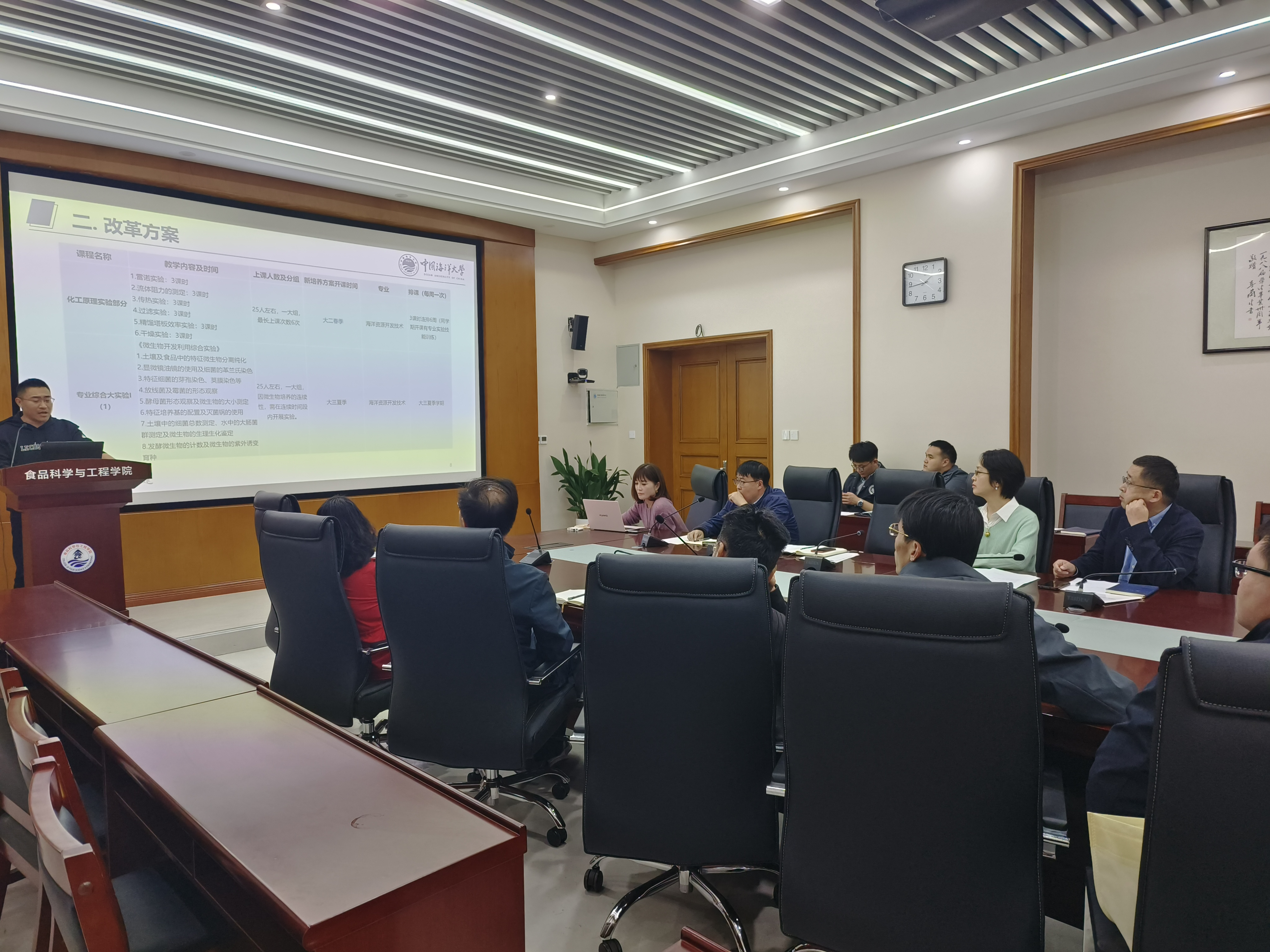 实践教学基层组织副主任鞠磊老师对学院三个专业的实验课程从时间安排、课程内容、学生情况和教学需求等方面进行了详细的梳理汇报,并给出了可行的时间优化改革方案。他表示,结合培养方案改革,均衡分布实验课程,合理安排时间和进度,能够确保学生充分掌握实验技能和实践知识,提升实验教学新高度。