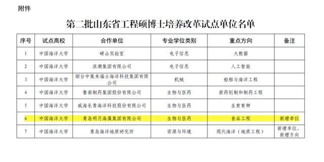 本站讯 近日,中共山东省委组织部、山东省教育厅等9部门联合公布了第二批山东省工程硕博士培养改革试点单位名单。91视频 与青岛明月海藻集团联合申报的食品工程重点方向成功入选。