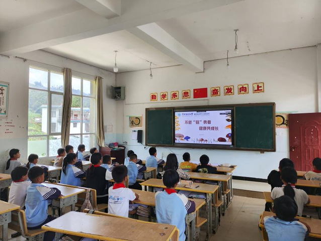 夏季是各类野生菌生长的旺季,也是食用野生菌中毒事件频发高发期。为此,志愿者们以“不做‘菇’勇者健康共成长”为题,深入浅出地介绍了预防野生菌中毒及营养膳食安全的小知识。野生菌品种多样,做法各异,误食有毒菌后会对身体产生极大的伤害。志愿者首先对野生菌形态、有毒蘑菇鉴别特征以及日常生活中如何预防野生菌中毒进行了系统的介绍,增强了同学们自我保护的意识。随后,围绕青少年生长发育的特点,通过“一二三四五,红黄绿白黑”的顺口溜,用通俗易懂的方式向大家介绍了合理膳食的小知识,帮助纳卡小学的同学们科学食养、均衡膳食茁壮成长。最后,志愿者向全体同学表达了健康成长的衷心祝福。