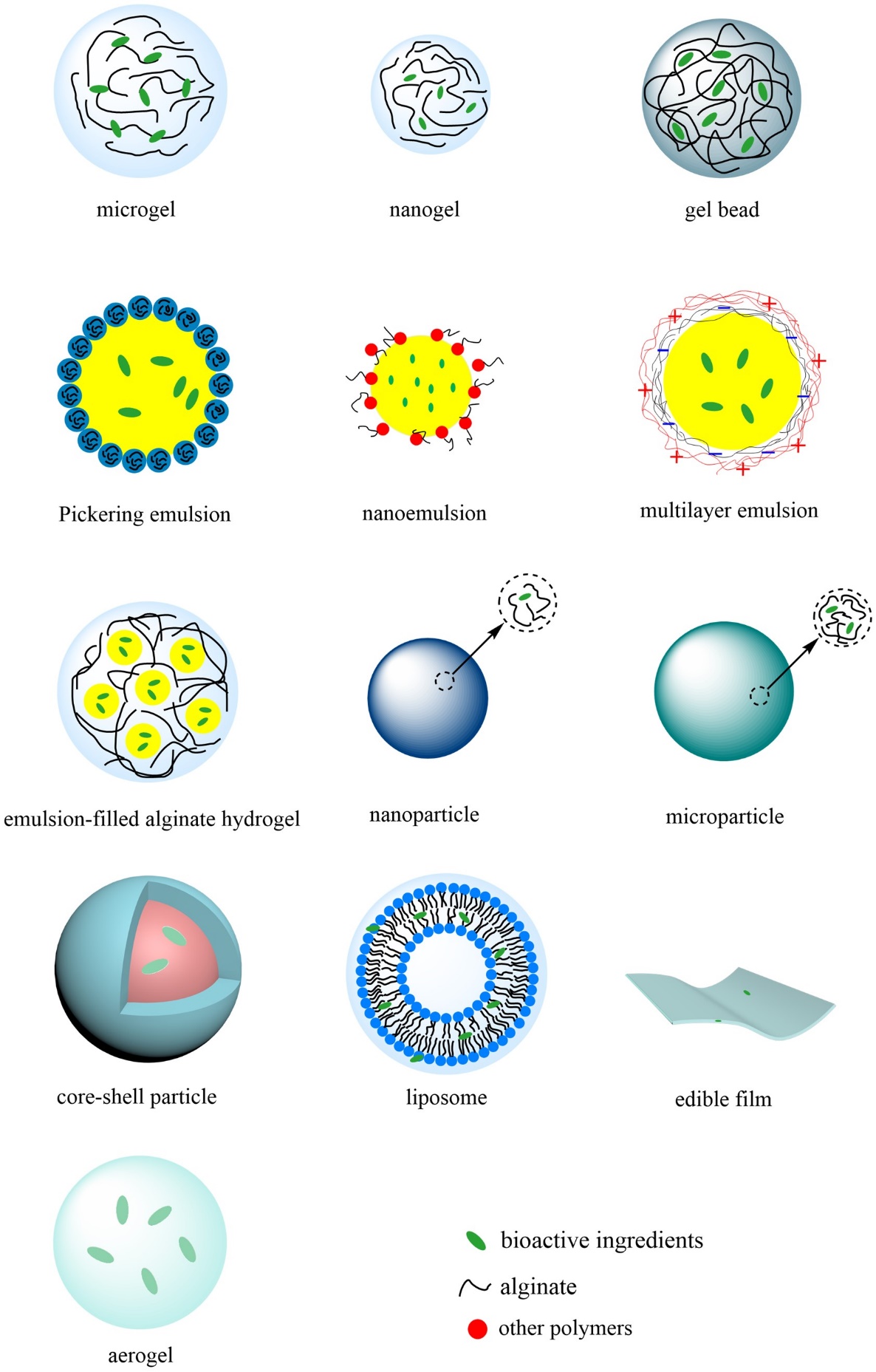 Figure 2. Schematic diagram of various alginate-based delivery systems