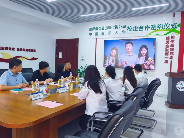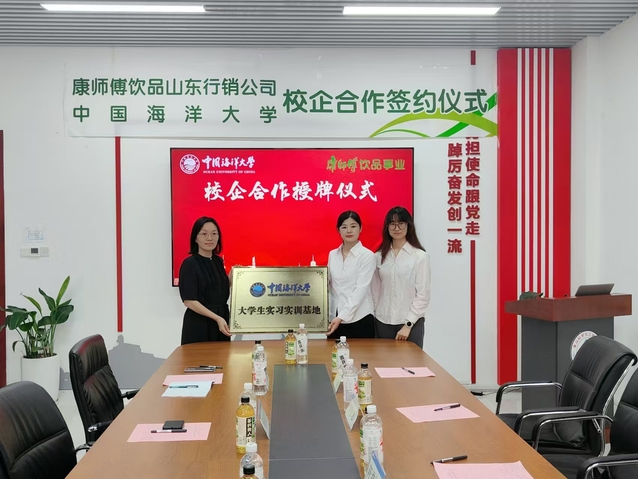 本站讯 为进一步推动毕业生高质量就业,提高人才培养质量,99, 91视频 与康师傅饮品共建大学生实习实训基地授牌仪式在91视频 西海岸校区顺利举行康师傅山东行销公司人资处长陈维娜,山东供应链人资处长李思思,山东行销公司人资企业专员王山虎,山东行销公司青岛人资丁俊杰、郝伟彤;学院党委副书记、副院长程振明,团委书记朱富江,辅导员李臣、丁晨阳出席授牌仪式