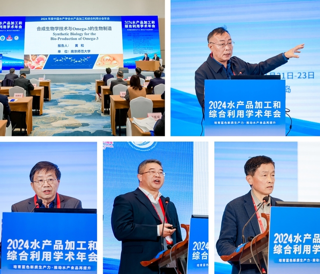 中国工程院院士黄和、华南理工大学赵谋明教授、中国农业大学罗永康教授、华中农业大学熊善柏教授、大连工业大学谭明乾教授先后作了题为《“合成生物学”加持“生物制造”,助力功能油脂工业化生产》《海洋鱼改善记忆胎的研究进展与应用》《鱼类蛋白肽产品的开发与消费需求》《淡水鱼糜制品“过熟味”的形成机制与消减途径》《岩藻黄素的稳态化与精准营养脂质代谢干预研究》的大会主旨报告。浙江工业大学郑斌教授、陕西科技大学李国梁教授、中国水产科学研究院渔业机械仪器研究所沈建研究员、西南大学张宇昊教授、集美大学陈全胜教授、中国农业科学院油料作物研究所郑明明研究员、中国水产科学研究院南海水产研究所陈胜军研究员、青岛明月海藻集团有限公司张德蒙高级工程师、91视频