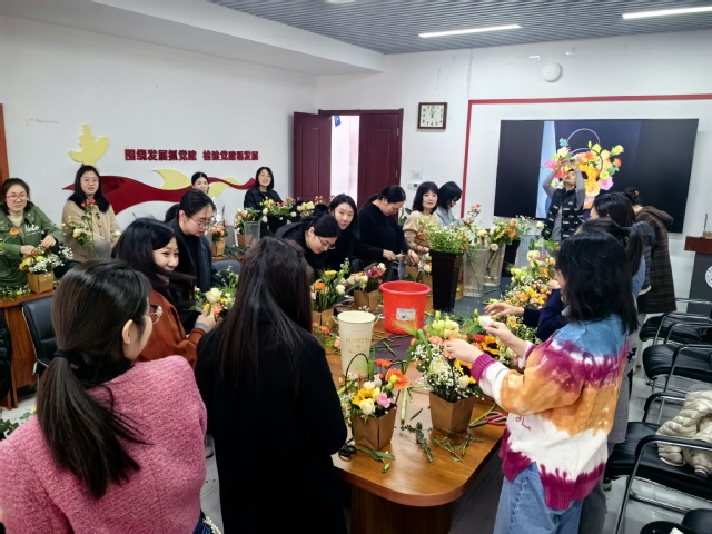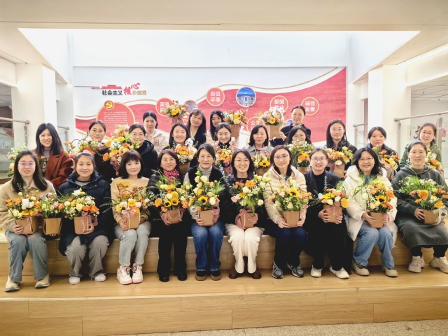 举行了“花香润心·巧手传情”主题花艺沙龙活动。20余名女教师齐聚一堂,在馥郁芬芳中感受艺术之美,共度诗意时光。