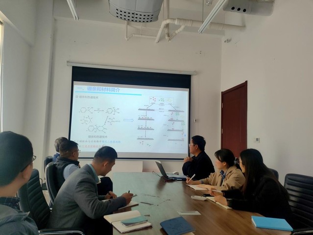 汪明明老师系统介绍了硼亲和材料的发展历程、应用领域及存在的技术难点,结合前期研究并细致讲解了适合中性环境下的低pKa硼亲和材料的构建策略、硼亲和材料对糖分子的选择性识别规律、以及其在定向调控醛糖-酮糖酶法异构化领域的应用。报告结束后,与会教师围绕硼亲和效应组分分离与活性保护、硼亲和材料的特异性、硼亲和技术的应用场景及范围等问题展开热烈讨论。