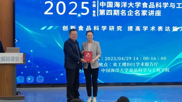 陈维娜处长分享结束后,于德华书记向康师傅控股茶饮研发中心经理杨晓丽颁发校外导师聘书。